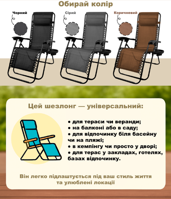 Замовила цей шезлонг, продавец зв'язався швидко,товар відповідає опису,швидка відправка, якість просто супер, вже отримую задовлення від нього.Дякую магазину, trustystore-space, вдалих продаж!