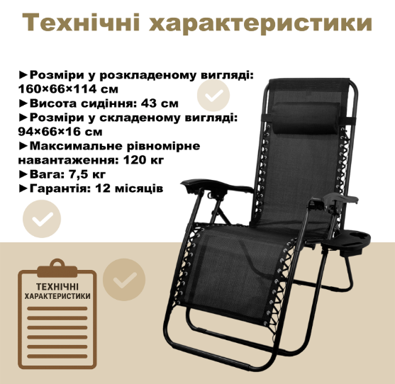 Замовила цей шезлонг, продавец зв'язався швидко,товар відповідає опису,швидка відправка, якість просто супер, вже отримую задовлення від нього.Дякую магазину, trustystore-space, вдалих продаж!